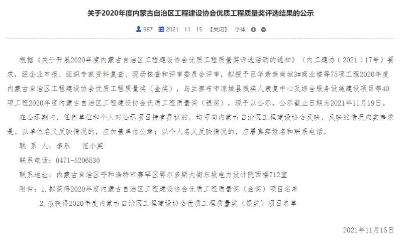 “內蒙古自治區工程建設協會優質工程質量獎” 評選活動是內蒙古首次設立的重要獎項,旨在進一步落實自治區“以質取勝,建設質量強區”發展戰略,促進工程建設質量和技術創新水平穩步提升,打造北疆亮麗風景線。中國二冶通過參加優質工程質量獎評選活動,有效的發揮了公司精品工程示范引領作用,使公司不斷總結先進工藝做法和工程管理經驗,并且積極的推動了公司各項工程質量安全管理水平的整體提高,為公司高質量發展起到了積極的促進作用。